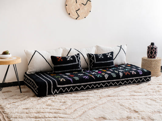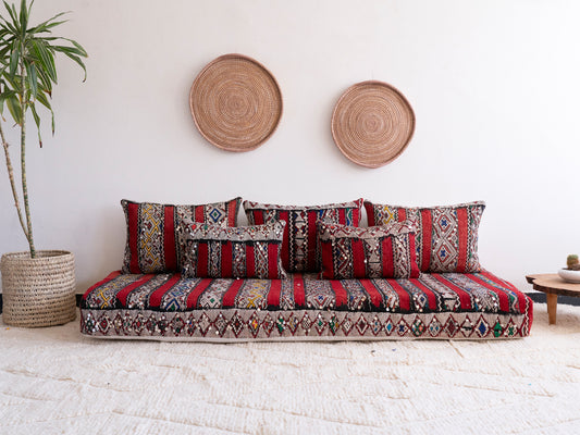 6ft Handmade Amazigh Vintage Sofa Dahya ⴰⵓⵔⵉⵏⵊ. FREE SHIPPING