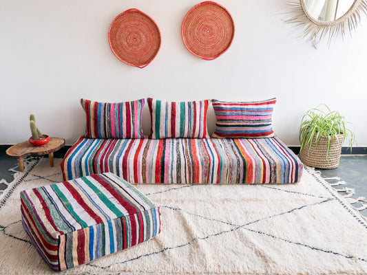 6ft Handmade Amazigh Vintage Sofa Boucherouite ⵜⵓⴷⴻⵔⵜ. FREE SHIPPING