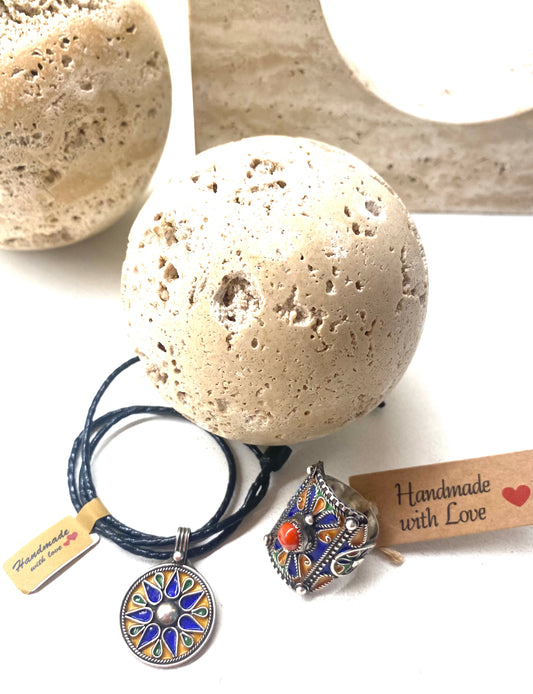 Amazigh Silver Necklace Khmissa set Leather cord ⴻⵢⵏⴰⵏ ⵏ ⴰⴳⴰ Necklace.