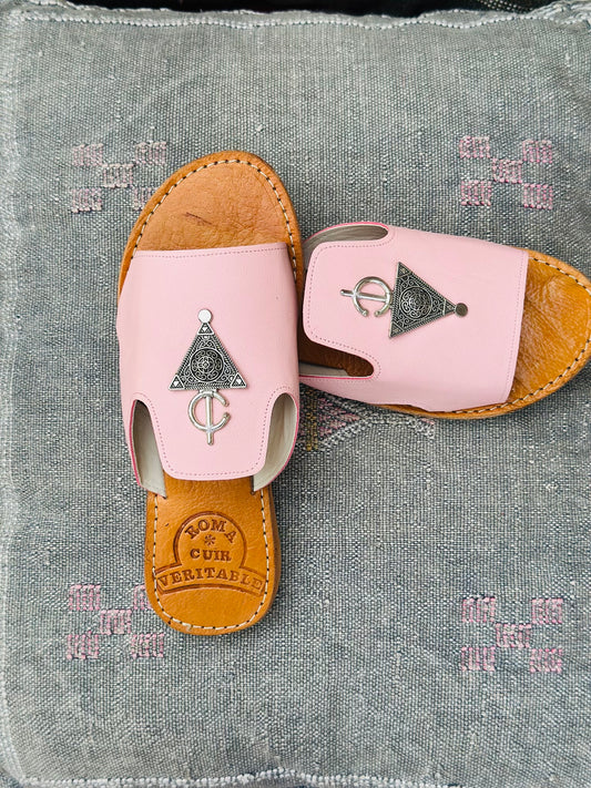 Rose Dusk Amazigh Leather Slipper with Fibula ⵓⵏⴳⴳⵍⴰⵏ.