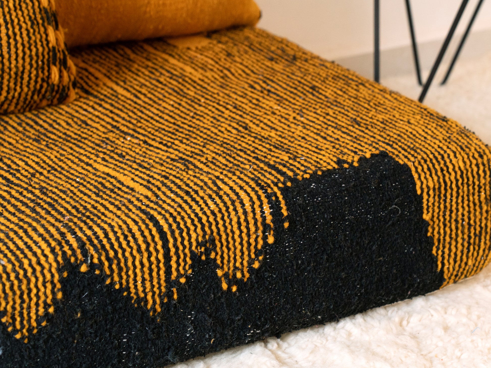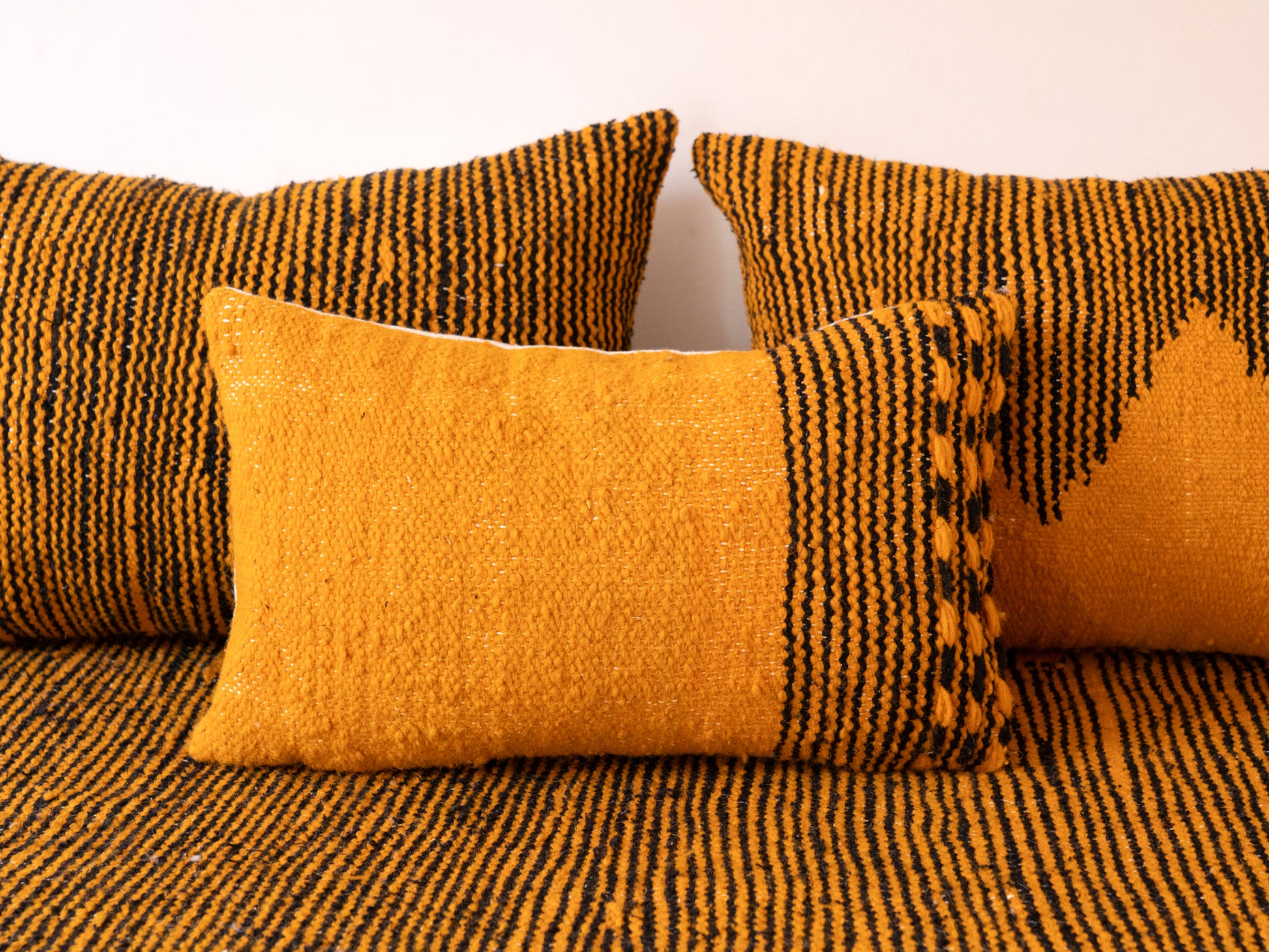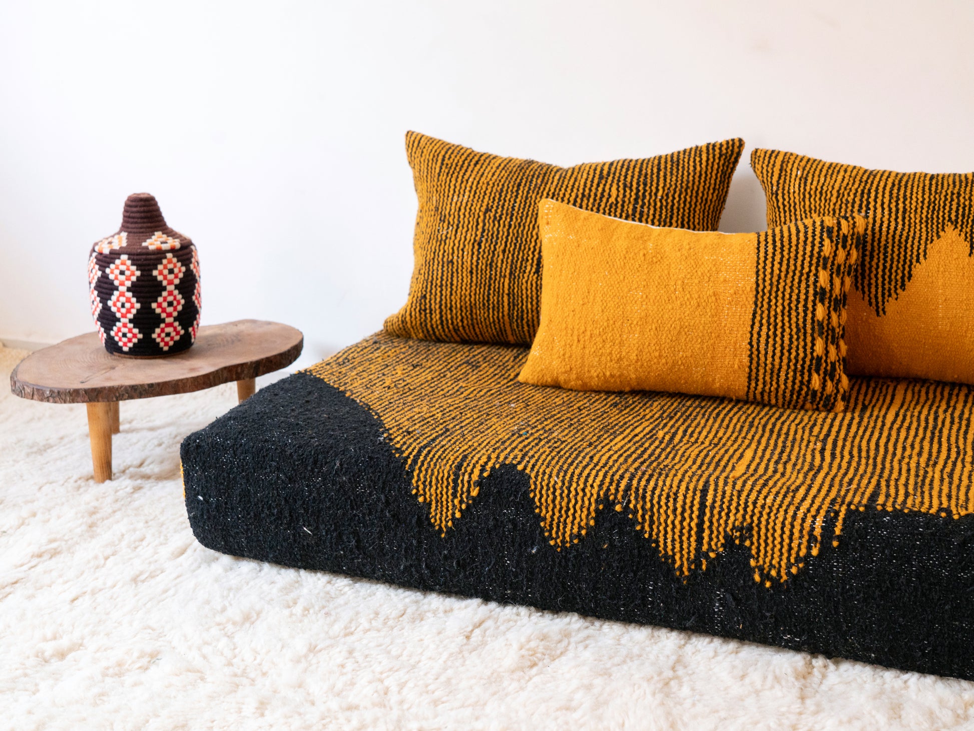 This Small Floor Couch is handmade using a Moroccan Rug. The covers are perfect to create a lovely Amazigh Moroccan corner in your house.