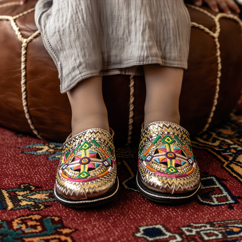 Crafted with love in Morocco, these handmade leather slippers for kids blend tradition with versatility. Designed for playful days and cozy evenings, they can be worn two ways—either as closed-back shoes for a snug fit or as easy slip-ons for relaxed comfort. Made from soft, breathable leather that adapts to little feet, they’re perfect for both indoor lounging and casual strolls.