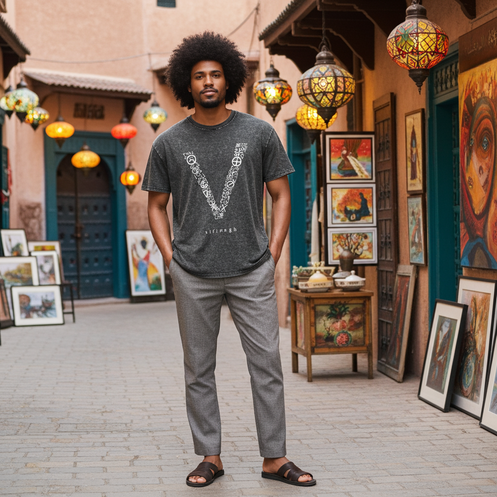 A relaxed, loose-fit unisex tee featuring bold Amazigh-inspired prints. Made for comfort and style, it celebrates heritage while keeping your everyday look effortlessly cool.